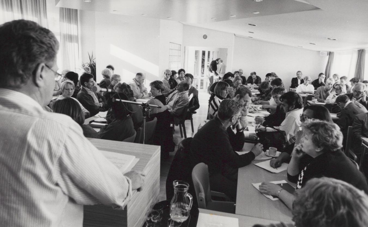 Fundur fiskvinnslufólks í Reykjavík 5. okt. 1991. Í ræðustól: Snær Karlsson - Mynd: Vinnan/Róbert.
