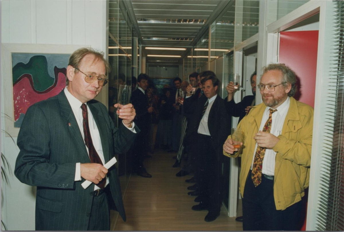 Menningar og fræðslusamband alþýðu. Frá opnun nýs húsnæðis MFA í september 1991. Karl Steinar og Ásmundur Stefánsson. Mynd: Vinnan/Róbert.