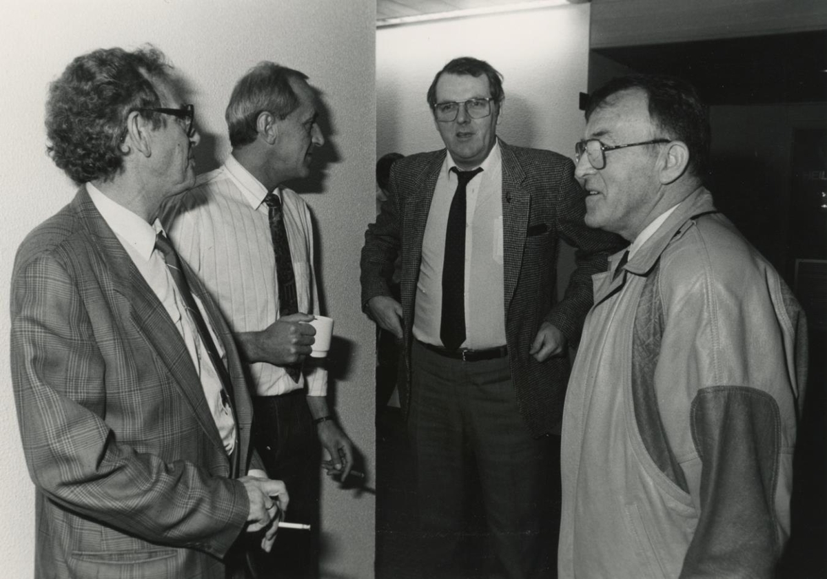 Sambandsstjórnarfundur 1990. Magnús Geirsson, Sævar Frímannsson, Guðmundur Þ. Jónsson og Pétur Sigurðsson. Mynd: Róbert. ASÍ 132.