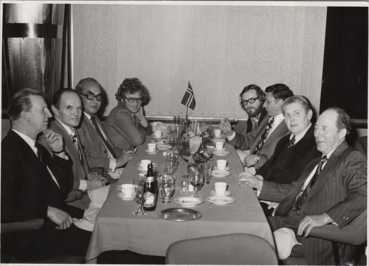 Átta karlar við kaffiborð, annar frá vinstri er Björn Jónsson forseti ASÍ.