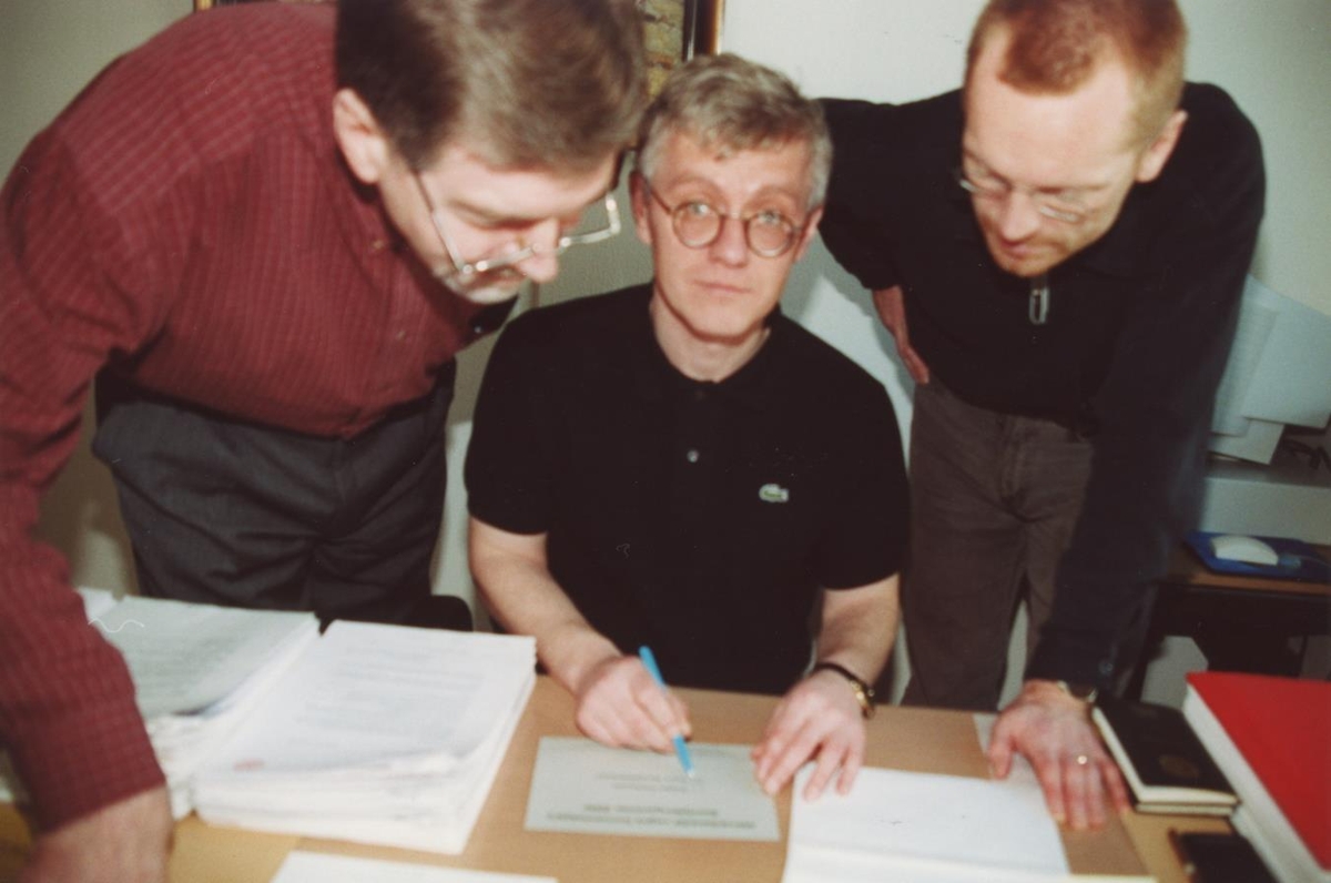 Grín og glens á skrifstofu ASÍ við formannskjör Samfylkingarinnar árið 2000.