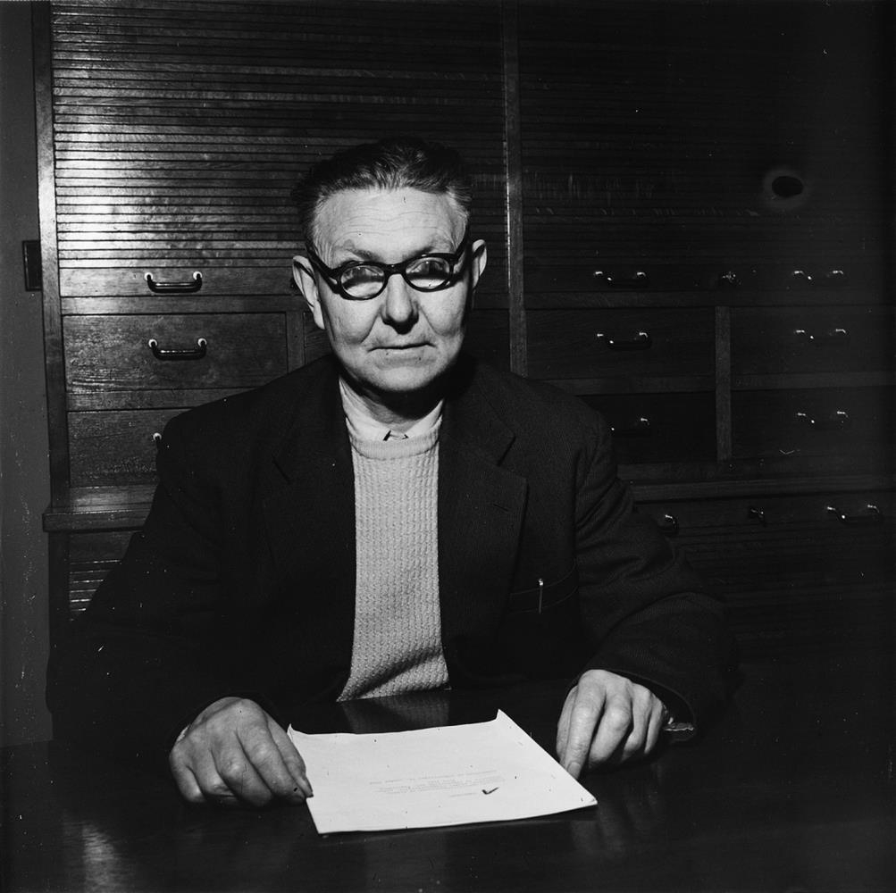Hannes á skrifstofu Dagsbúnar í janúar 1961.