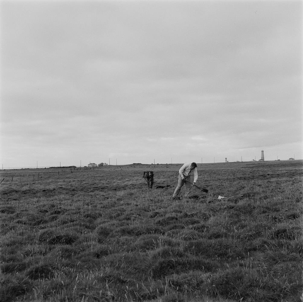 Björn Þorsteinsson og Þorleifur Einarsson við rannsóknir í Garðinum á Reykjanesi.