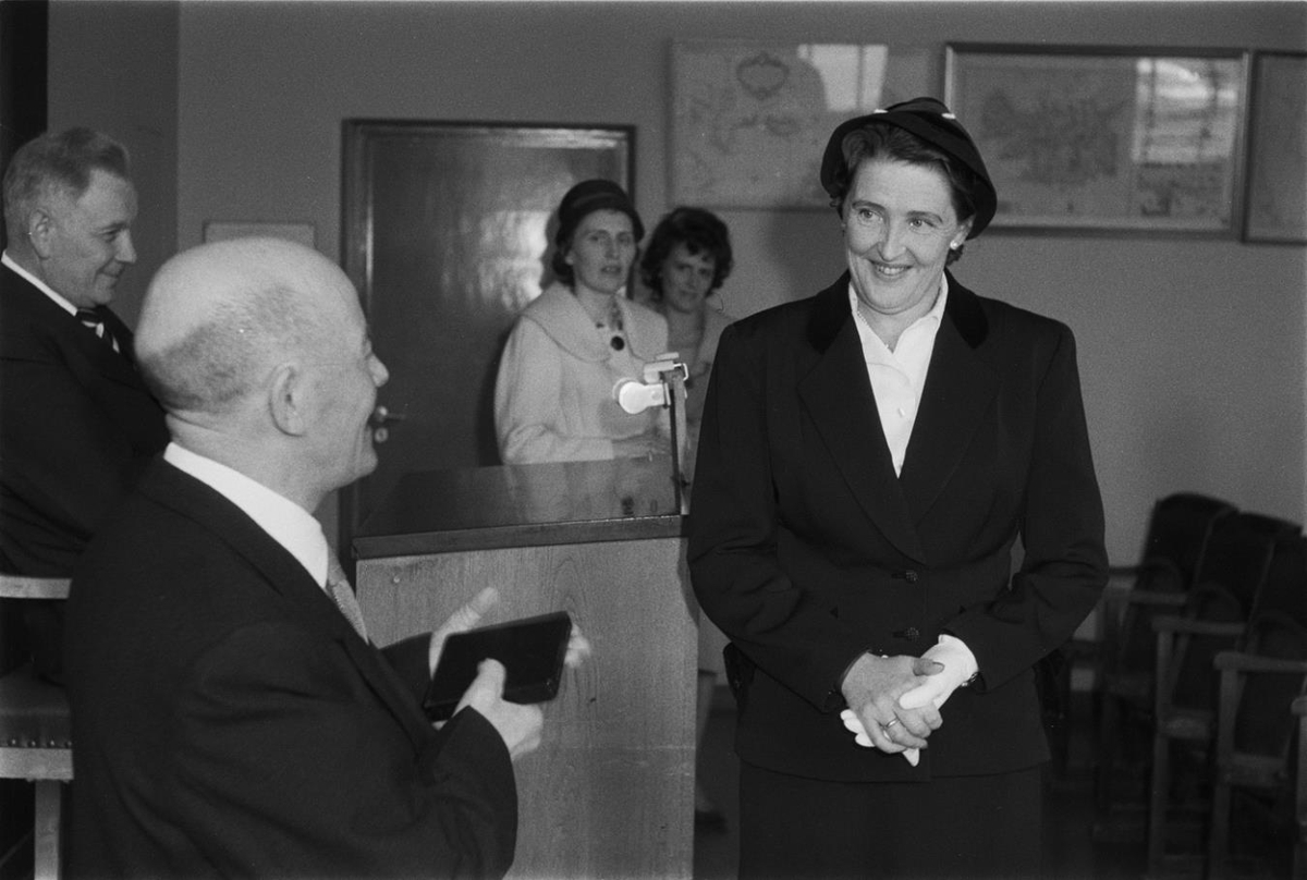 Verðlaun afhent úr Minningarsjóði Daða Hjörvar, fyrir fegurstan flutning íslensks máls í útvarpi, 11. júní 1961.