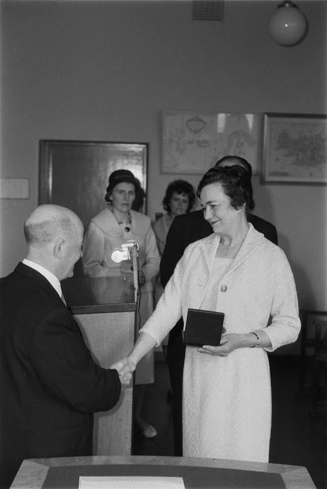 Verðlaun afhent úr Minningarsjóði Daða Hjörvar, fyrir fegurstan flutning íslensks máls í útvarpi, 11. júní 1961.