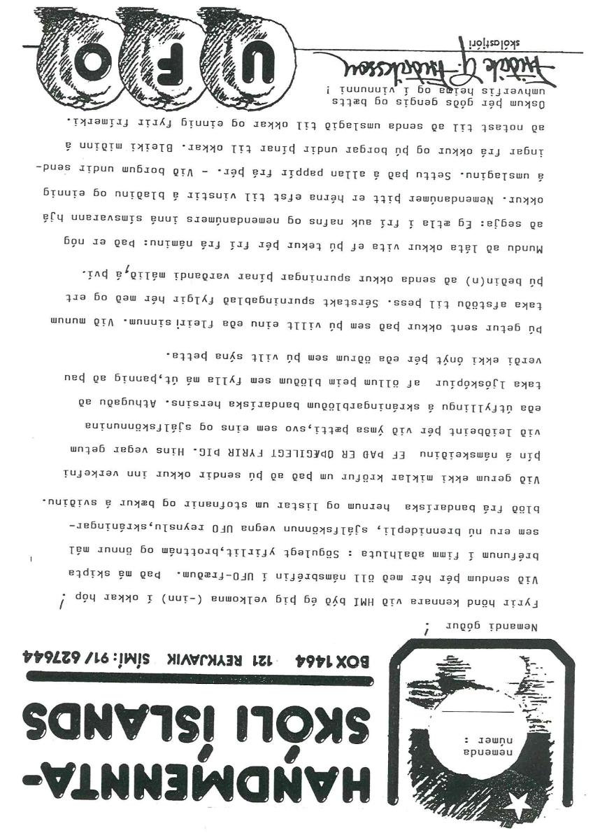 Þetta námskeið fjallar um UFO og geimverur. Námsefnið er alls 46 blaðsíður. Kaflarnir skiptast um það bil svona: 1) Inngangur 2) Sögulegt yfirlit. Þýðing EÞÁ á broti úr bók Dr. J Allen Hynek, Ókennilegir fljújandi hlitir og reynsla okkar af þeim: vísindaleg athugun (The UFO Experience: A Scientific Inquiry) frá 1972. Þýðing EÞÁ á broti úr bókinni Secret Life eftir David M. Jacobs frá 1993. 3) Brottnám. Sagt frá reynslu fólks sem telur það hafa verið numið brott af geimverum og svo skilað. 4) Afhjúpanir og sérskoðanir: útlistun á „óvísindalegu“ efasemdarfólki sem „grefur undan“ UFO fræðum. 5) Leynd stjórnvalda. 6) Andleg skilaboð. 7) Brottnám já eða nei: spurningalisti til að komast að því hvort maður hafi orðið fyrir brottnámi og svo gleymt því. 8) Spurningalisti frá bandaríksa flughernum um UFO. 10) Diskaform og hreyfingar: teikningar af lögun og hreyfingum UFO diska. 11) Rannsóknarstofnunarlisti með heimilisföngum og tengiliðaupplýsingum hjá stofnunum sem rannsaka UFO (7bls). 12) Bókalisti (8 bls.)