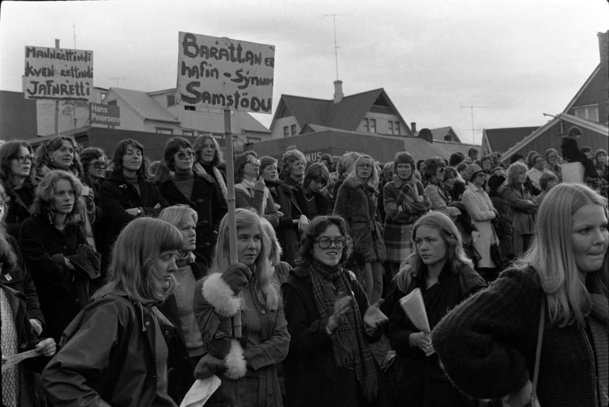 Taka 751024. Kvennafrídagur 1975, útifundur á Lækjartorgi o.fl.
