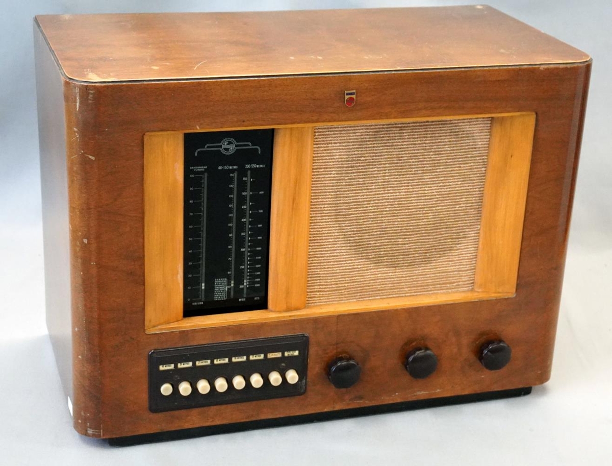 6 lampa útvarpstæki með 6 AM bylgjusviðum. Lw. Mw. Sw- 13m, 16m, 19m, 25m, 31m, 41m.