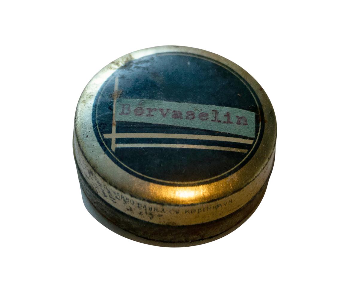 Efst er hólfað niður og innihalda lyfjaglös, grisjur o.fl. Einnig er fest með teiknibólum innan á lok leiðbeiningar sem hafa líklega fylgt kistunni.