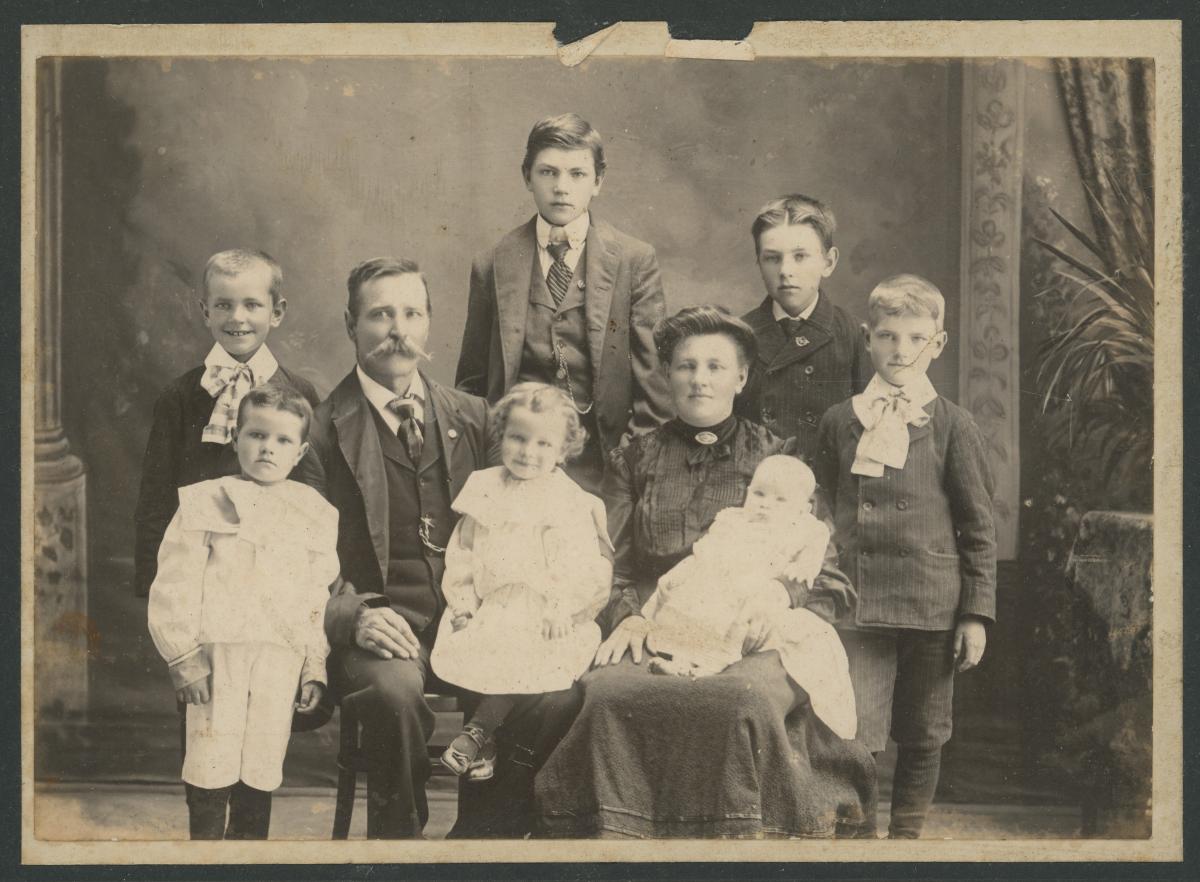 Jens Jónsson Thorgeirsson trésmiður frá Stóra-Galtardal á Fellsströnd og Anna Sigurrós Jónsdóttir frá Spágilsstöðum í Laxárdal ásamt börnum sínum.
