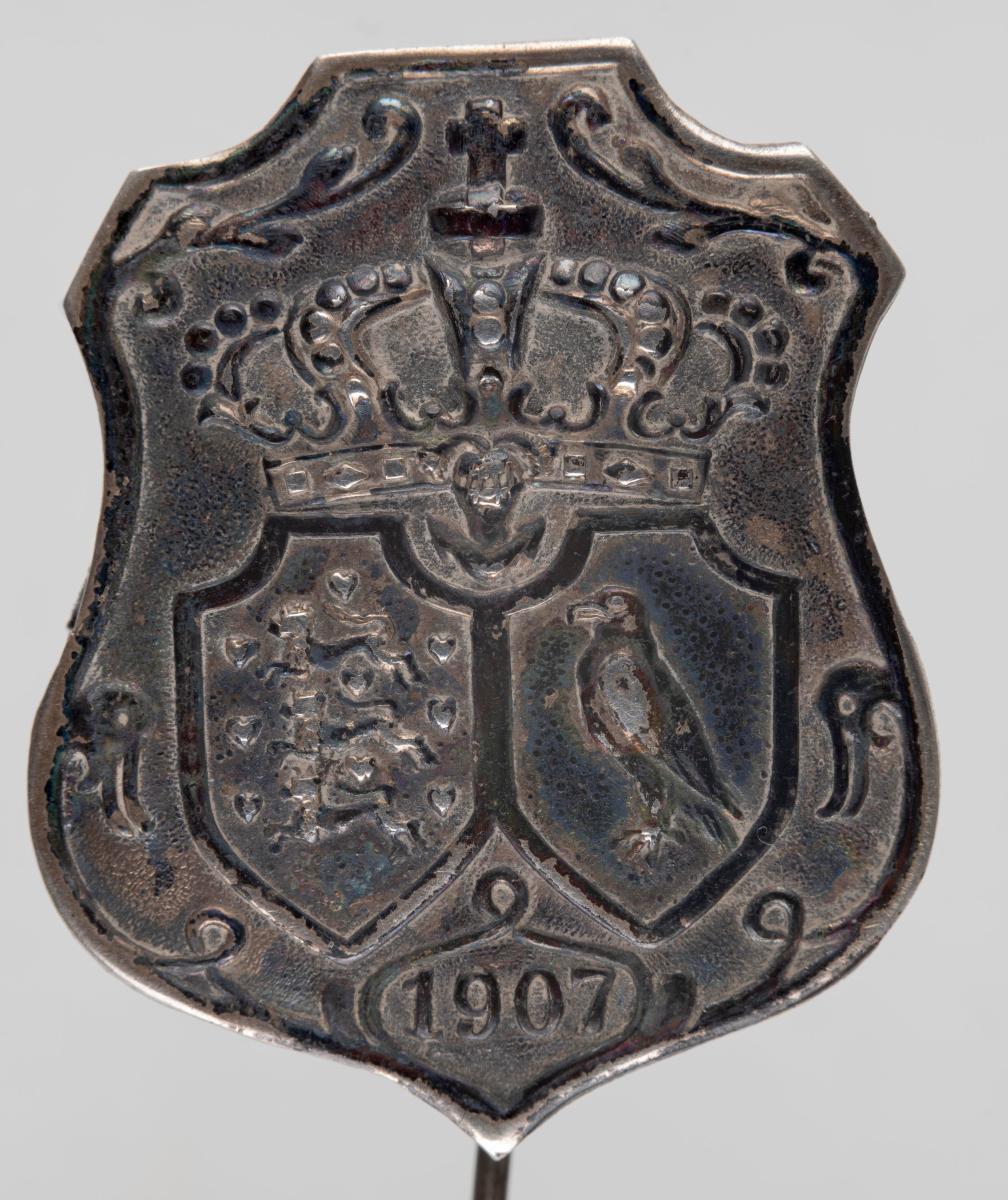 Silfurnæla, skjaldlaga. Ofarlega á nælunni framanverðri er kóróna og fyrir neðan hana tveir samliggjandi skildir. Á vinstri skildinum er skjaldarmerki Danmerkur sem samanstendur af þremur stikandi ljónum með kórónur á höfði ásamt níu hjörtum og á hægri skildinum er skjaldarmerki Íslands, fálkamerkið. Fyrir neðan skildina er ártalið 1907. Á nælunni er einnig jurtaskreyti. Á bakhlið er fastur pinni til að festa næluna við klæðnað.