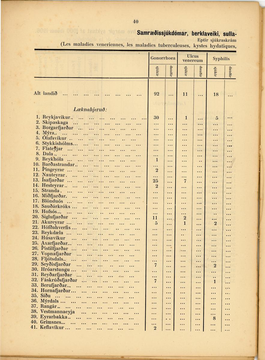Íslandi 1905 og 1906. - 69 bls. : töflur