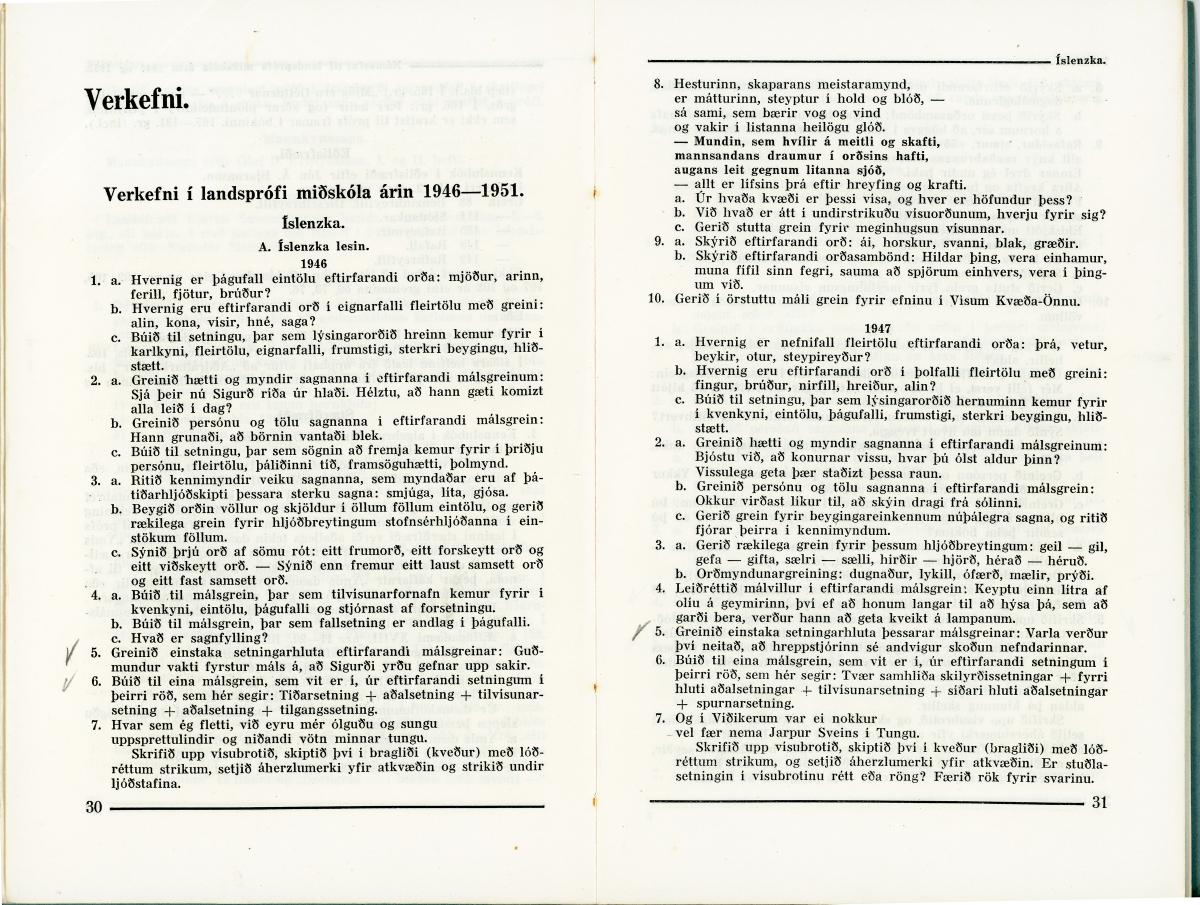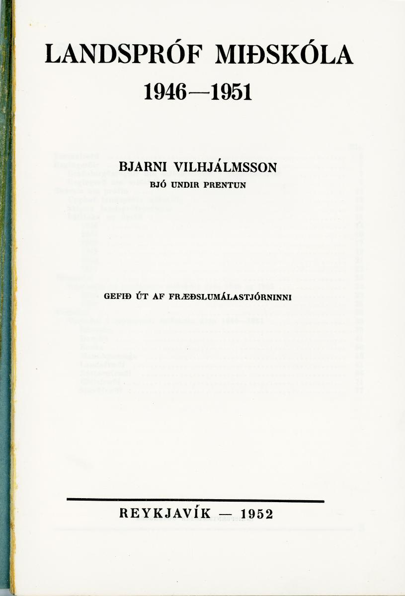 Landspróf miðskóla 1946-1951 / Bjarni Vilhjálmsson bjó undir prentun ; gefið út af Fræðslumálastjórninni. - 85 bls. : töflur