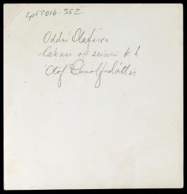 Á bakhlið er skrifað: Oddur Ólafsson læknir og seinni k.h. Ólöf Runólfsdóttir.