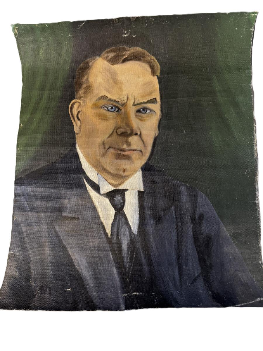 Málverk, óinnrammað, af Dr. Páli Eggerti Ólasyni. Páll Eggert var fyrstur til að verja doktorsritgerð við Háskóla Íslands, 1919. Páll varð síðar prófessor í sögu við Háskólann og rektor skólans 1923-1924. Myndina málaði og gaf Ástríður Thorarensen.