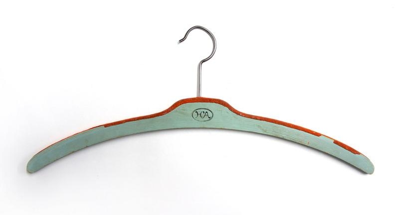 1960/1961. Herðatréð er með merki verslunarinnar á annarri hliðinni: stöfunum