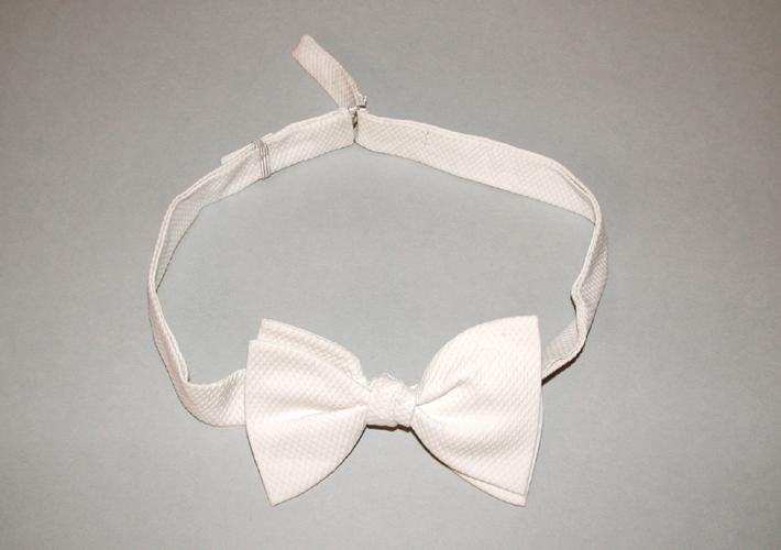 kjólfötum nr. 2007-42-2. Slaufan er úr hvítu bómullarefni, grófmynstruðu.