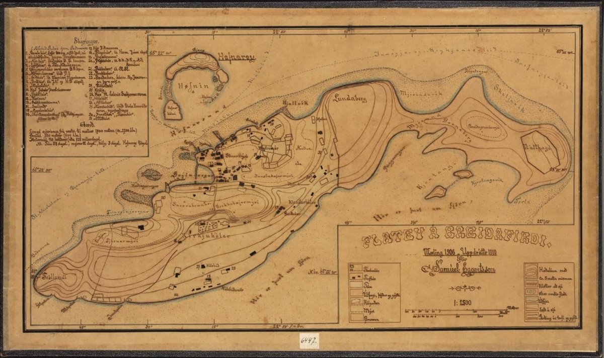 Mæling 1906. Uppdráttur 1910. Eftir Samúel Eggertsson.
