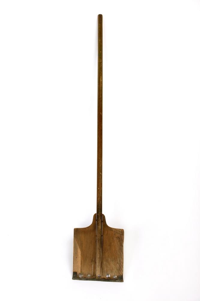 Reka úr furu. L. hennar um 54 sm, blað 34 sm á l., br. 25,5 sm, þvm. skafts 3,7 sm. Í blaði tvær skákir sitt hvoru megin við skafttrénu, frá þeim ganga upp hjá innri brún mjóar bríkur með sveigskornum endum og þar eirskrúfa, en kverk á báða vegu. Skafti ferhent og talsvert ávalt. Á rekuna er járnvar, fest með hnoðnöglum. Blaðið skakkt og með bót í, rekan hefur dökknað og sjá má meiðsl.