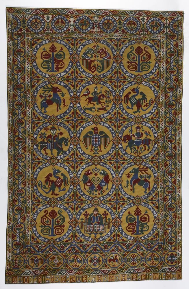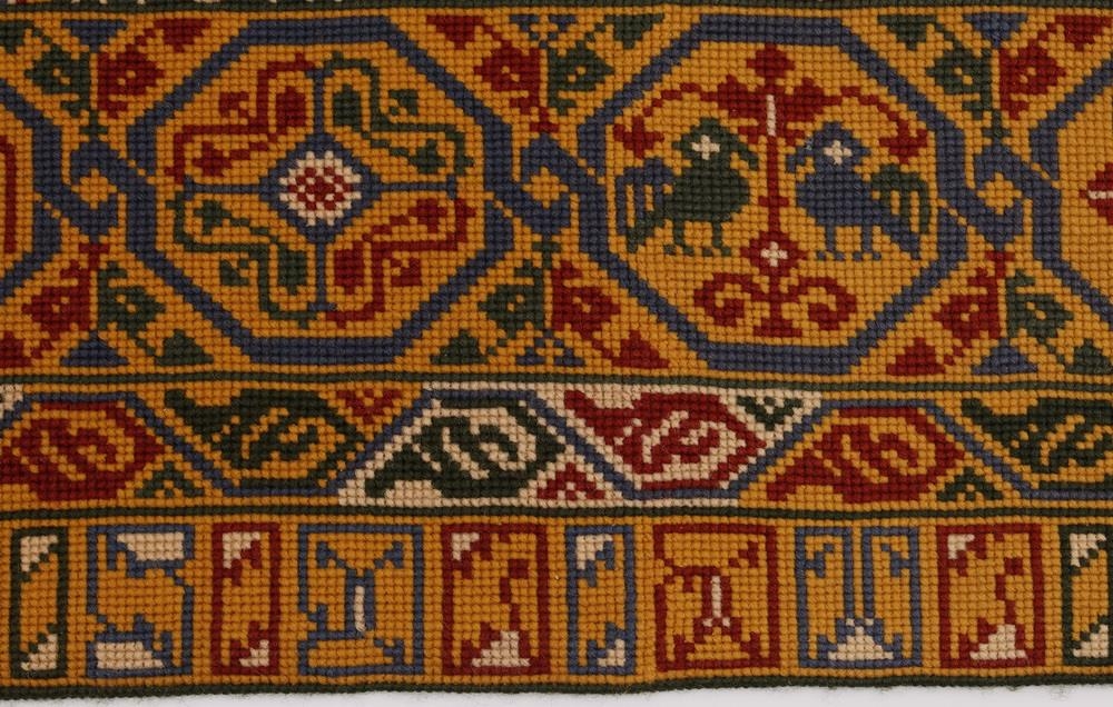 Veggteppi. Ábreiðan er saumuð með krosssaumi, venjulegt ullarband og er greinilega ábreiðan Þjms. 800, "riddarateppið" að miklu leyti fyrirmynd. Í henni eru fimmtán hringir með myndum, skrautblóm, riddarar, veiðidýr, maður við borð, umhverfis hringana kantur með akantusteinungi. Allt umhverfis með brúnum eru þrír borðar með teinungi, en fjórir neðst með fuglum, dýri og skrautmunstri og neðst er með höfðaletri: Anno ri sigridur bogadottir ih 1930. - Skammstafanirnar munu eiga við dóttur hennar, Ragnheiði Jónsdóttur ( Ream) og eiginmann, Jón Halldórsson, bankamann og söngstjóra. - Öll er ábreiðan með rauðum, gulum, grænum og bláum litum, óskemmd. Ábreiða þessi er gerð til að hanga á vegg sem skrautteppi, enda trélisti efst, sem henni er fest á.