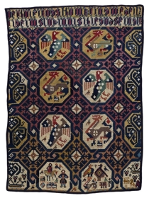 Í bók Elsu segir að ábreiðan sé saumuð með gamla krosssaumnum og fáeinum sporum af pellsaumi, með ullarbandi í togtvist.