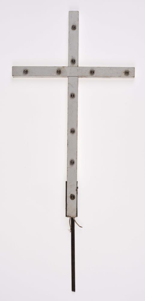 járnteini til þess að stinga niður við gröfina. Krossinn er smíðaður um
