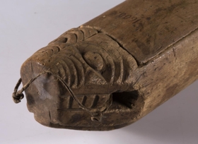 fyrir annan (aptari) endann, en á hinum er útskorin ormstrjóna og er dregin