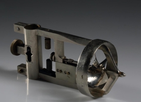 Vatnshraðamælir. Mælirinn er smíðaður eftir þýskri fyrirmynd fyrir Sigurð Thoroddsen sem þá annaðist vatnamælingar. Hann notaði mælinn á árunum 1927-1947. Eftir það notaði Sigurjón Rist mælinn allt fram til ársins 1972. Mælirinn hefur ætíð reynst með afbrigðum vel. Hann er ofan í viðarkassa með leður handfangi og er kassanum lokað með tveimur málmspennum. Í kassanum er einnig lítil plastflaska með olíu merkt NECCHI OIL og ljós- og hljóðmerkjatæki grátt að lit. Mælinum fylgir bréf skrifað 21.12.1972 undirritað af Sigurði Thoroddsen verkfræðingi. Einnig fylgir stillingaskjal og fleiri skjöl. Sjá fylgiskjalamöppu aðfangabókar.