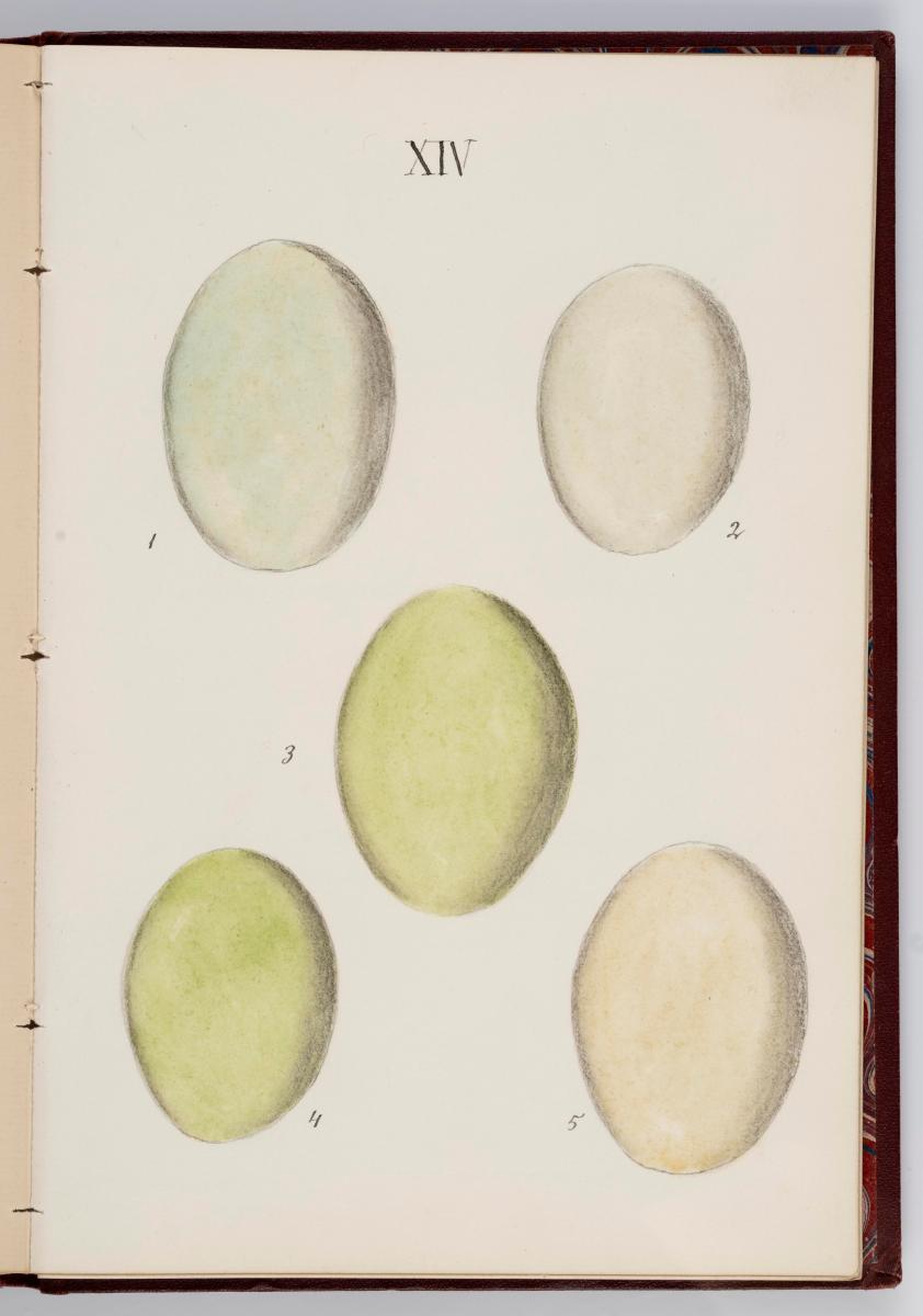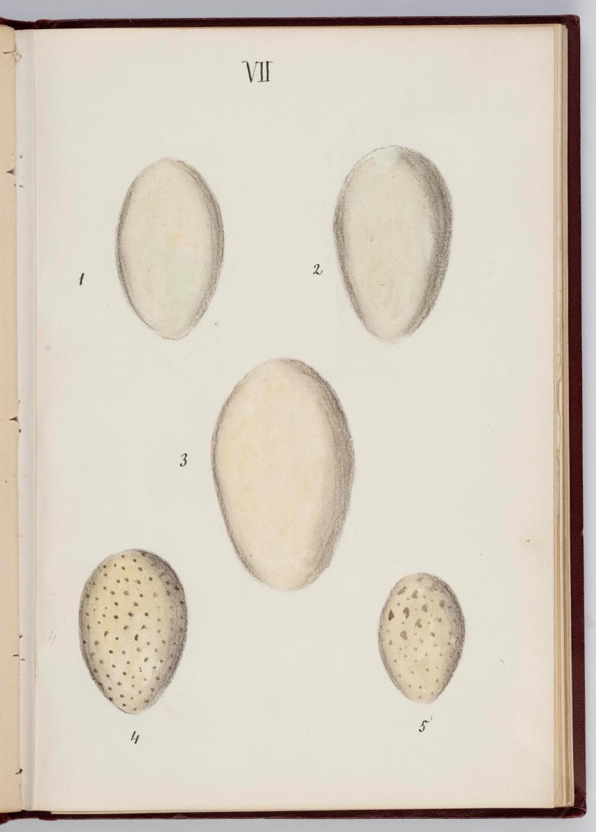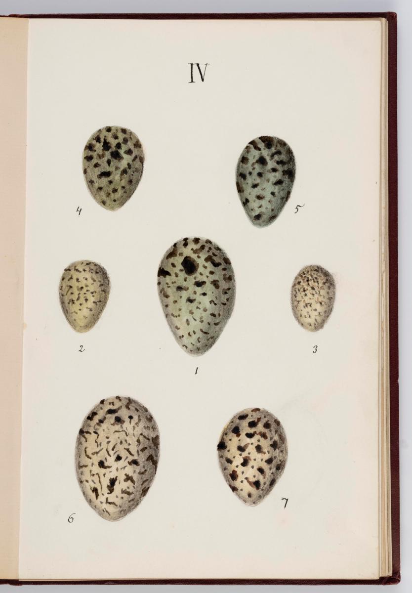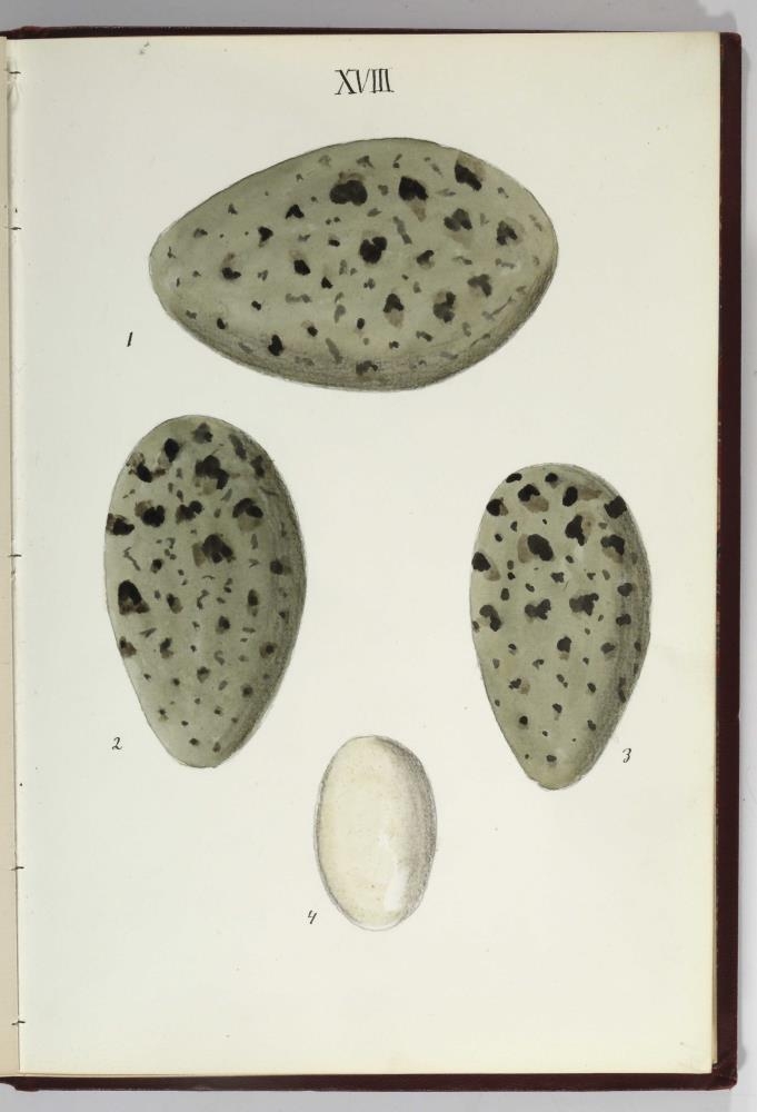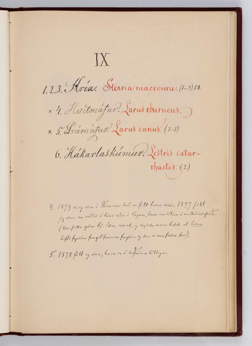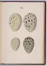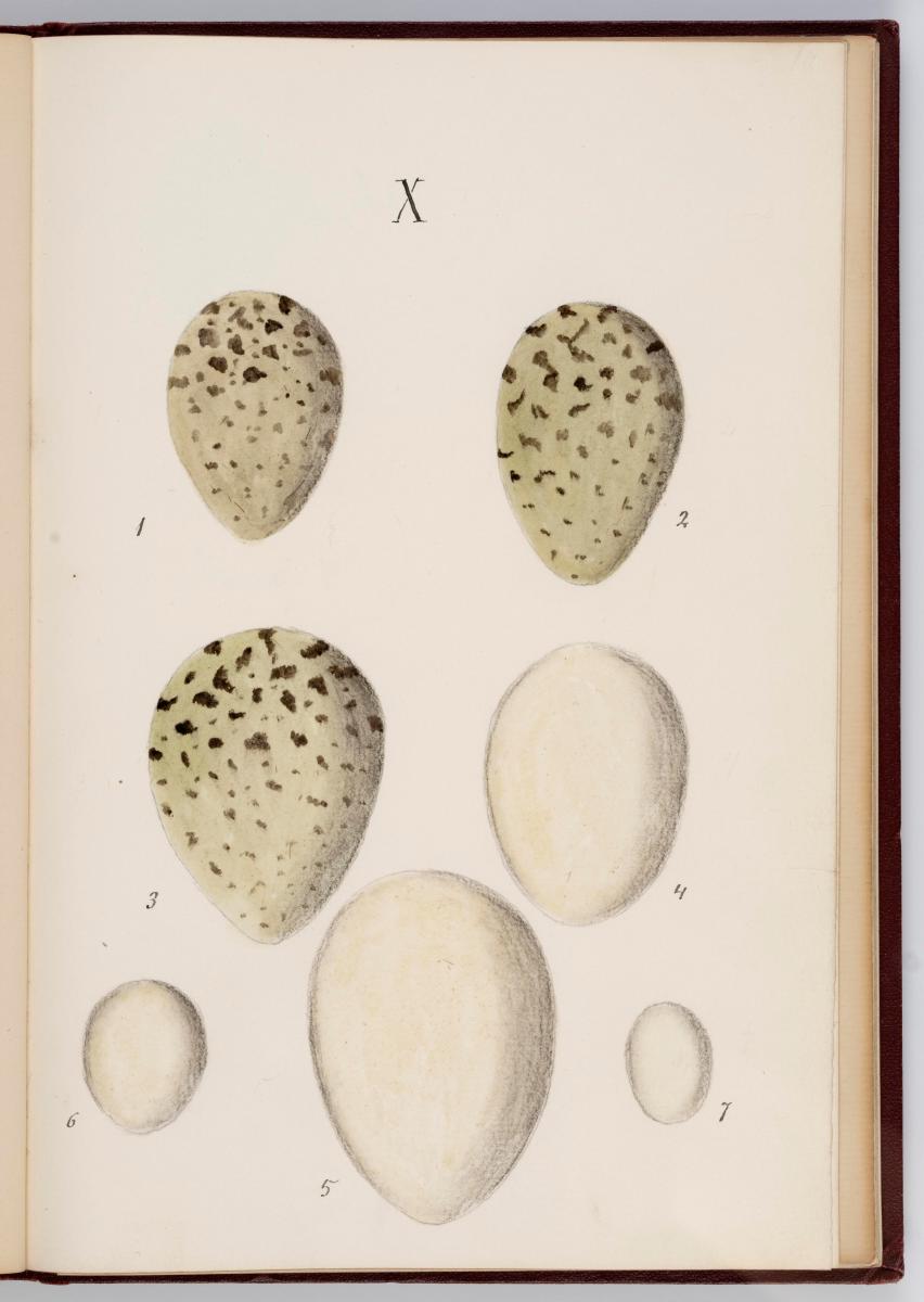Bók, Íslenzk fugla-egg, ásamt eggjum aðkomufugla, teiknuð af Ben. Gröndal 1904, svo á titilblaðinu, sem er skrautritað. Á næsta blaði stendur, sömuleiðis skrautritað: Til Guðmundar Magnússonar Læknaskólakennara 25. September 1904 frá B.G. Á því blaði eru einnig skrautlegar litmyndir af fugli, þrílitri fjólu, rós og laxveiðimanni. Í bókinni eru 20 myndablöð með litmyndum af eggjunum og eru þær með eðlilegri stærð, en fyrir framan hvert blað er annað með skrá yfir fugla þá sem eggin eiga: eru fuglaheitin á íslenzku og latínu (með rauðu letri), þess getið, hve mörg egg hver fugl eigi og hve lengi hann sje að unga út: enn fremur eru þar athugasemdir um sjaldséða fugla hjer. Aptst er blað með ýmsum athugasemdum um bókina og um lit fuglaeggja. Bókin er bundin inn í rauðbrúnt ljerept. St. 25,5 x 17,8: þ. 1,3.