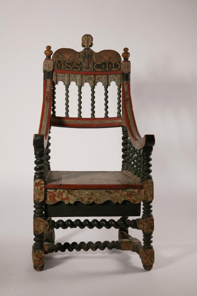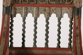 hjörtu, bakið er á hæð uppá höfuð 2 al. 7 þuml. allir fætur stólsins, þversláin