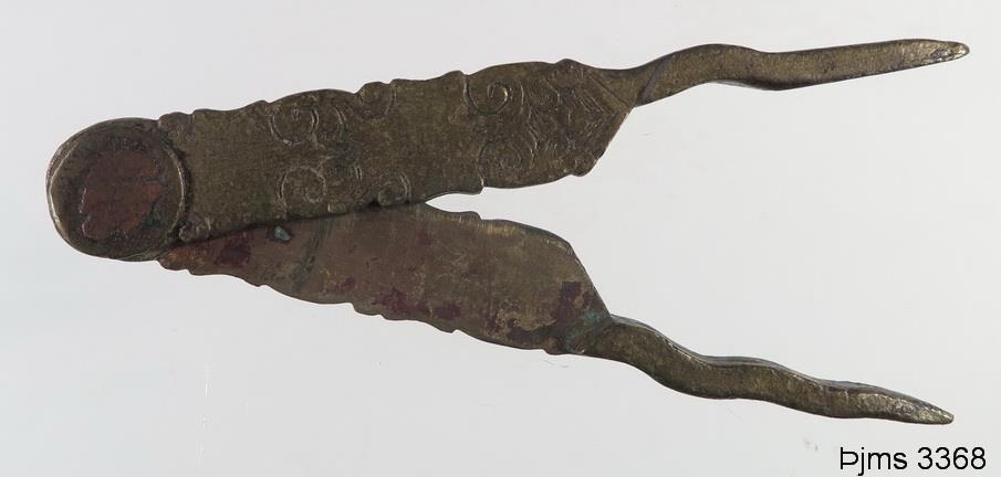 Hendrik Bjæring verzlunarmaður á Borðeyri: Látúnssirkill gamall, hann er rúmlega 3½ þuml. á lengd, álmurnar stuttar mjög og ganga fram í smábugum, hann er grafinn með nokkrum rósabugum á hliðunum, og með nokkru útsorfnu verki á röndunum: naglinn sem hann leikr á í endanum er úr eir. Sirkill þessi er jafnvel eldri enn frá þessari öld, hann fanst í fjörunni á Borðeyri.