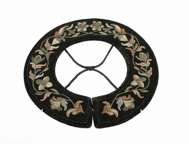 baldýraðr með gyltum vír, og rauðum, grænum, gulum, og bláum silkitvinna,