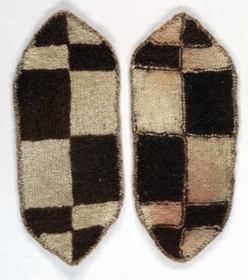 par, af venjulegri gerð, prjónaðir úr ull. Með hvítum reitum og brúnum,