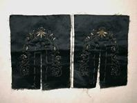 Svart efni en baldýring úr gylltum vírþræði. Ekki er vitað hver vann. Úr