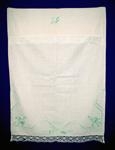 handklæðinu er útsaumur í grænum litum, abstrakt blóm og mynstur. Efst