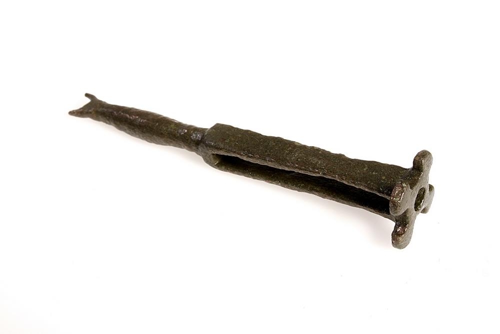 Lykill úr kopar að merlulás af fornri gerð. Aldur óviss.