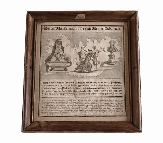 skýring í móðurmáli,“ innrömmuð prentmynd frá 1766 gerð til að vera framan