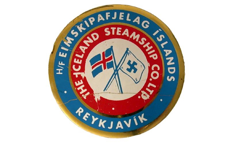hringur með hvítum stöfum: THE ICELAND STEAMSHIP CO.LTD. Síðan er mjó,