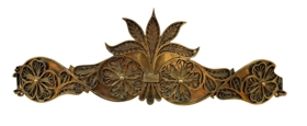 Koffur úr gylltu silfri, 47 cm að l., sett saman af miðhluta, 4 stokkum og 2 kringlum, sem eru hvor á sínum enda, en stokkarnir 2 hvorum megin við miðhlutann. Stokkarnir eru mjög líkir og á nr. 4729, tvöfaldir og er í efra borðinu 2 víravirkisblóm (sóleyjar) í S-lagðari umgerð, en neðra borðið er slétt þynna. Í kringlunum á endunum eru sams konar víravirkissóleyjar. Miðhlutinn er með 2 S-löguðum umgerðum með sóleyjum eins og stokkarnir, en upp á milli þeirra teygjast 5 víravirkisblöð, sum eru miðdepill og hámark koffursins. Aftan á miðhlutanum er stimplað PALLÞORK, þ.e. Páll gullsmiður Þorkelsson. - Sbr. síðasta nr.