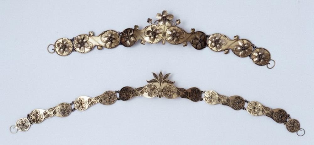 „Eftir að skautbúningurinn kom fram um miðja 19. öld minnkaði silfurstássið. Þó komu þá til ennisspangir eða koffur sem nýtt skraut, og voru þá ýmist heilar spangir eða gerðar úr mörgum liðum sem hlekkjaðir voru saman.“