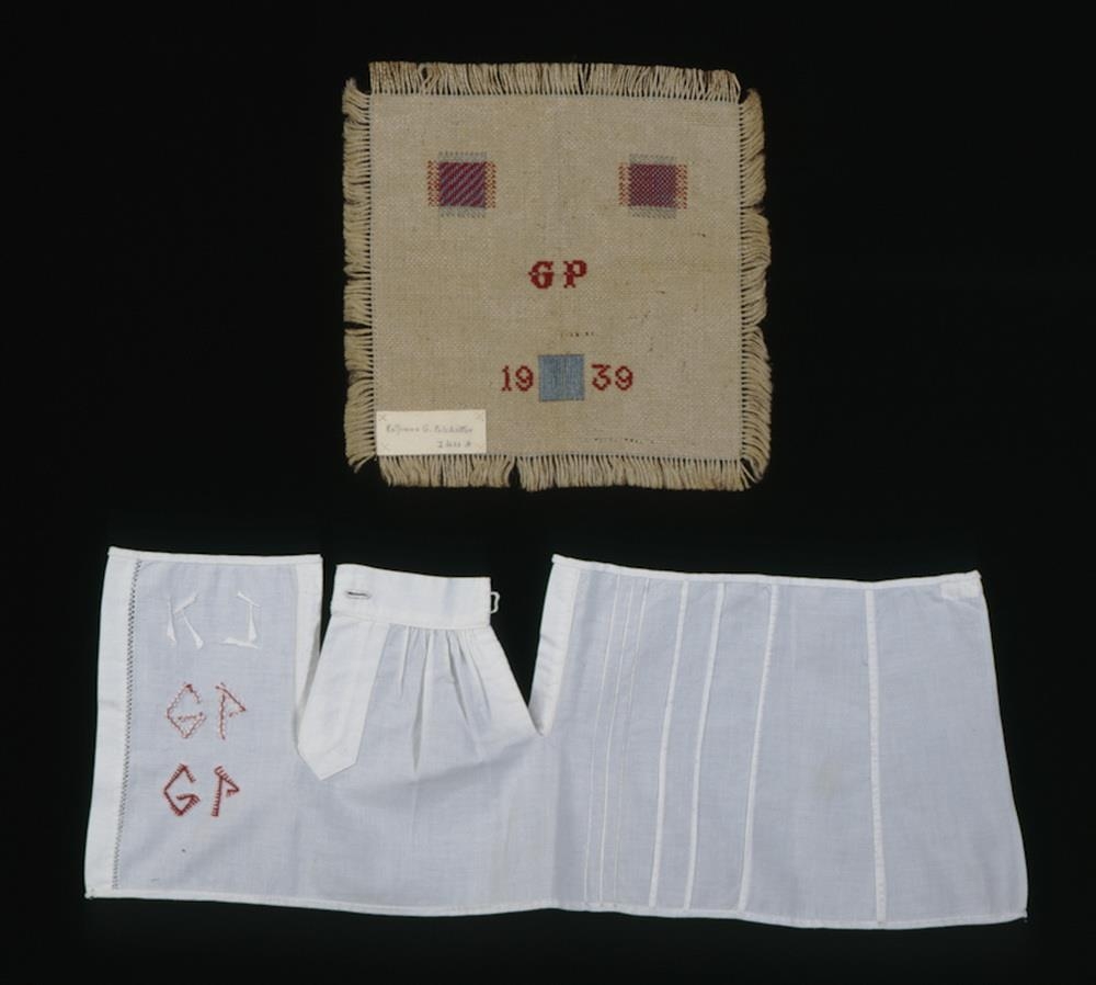 Gerður Pálsdóttir, fyrrum húsmæðrakennari, fædd 1924, gaf safninu árið 1985 nokkur svokölluð skyldustykki sem hún hafði unnið í handavinnu á skólaferli sínum. Skyldustykki voru verkefni sem allir nemendur skyldu vinna eins eftir nákvæmri fyrirmynd og leiðsögn kennara, læra undirstöðuatriði, rétt handtök og beitingu verkfæra. Því miður voru breytingar í verkefnavali vægast sagt litlar áratugum saman og kom það óorði á skyldustykkin. Veturna 1934-1938 var Gerður nemandi í æfingadeild Kennaraskóla Íslands og þar saumar hún svuntu, höfuðkappa og vélsaumsprufu.