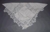 blúnduna með kapmellusaum.Litur hvítur. Kemur frá Danmörku og er saumaður