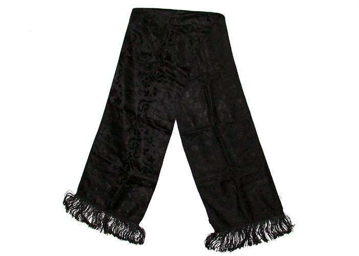 silki, með samlitu kögri á báðum endum. Slifsi sem þessi voru borin við