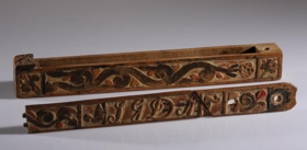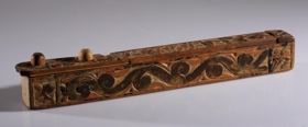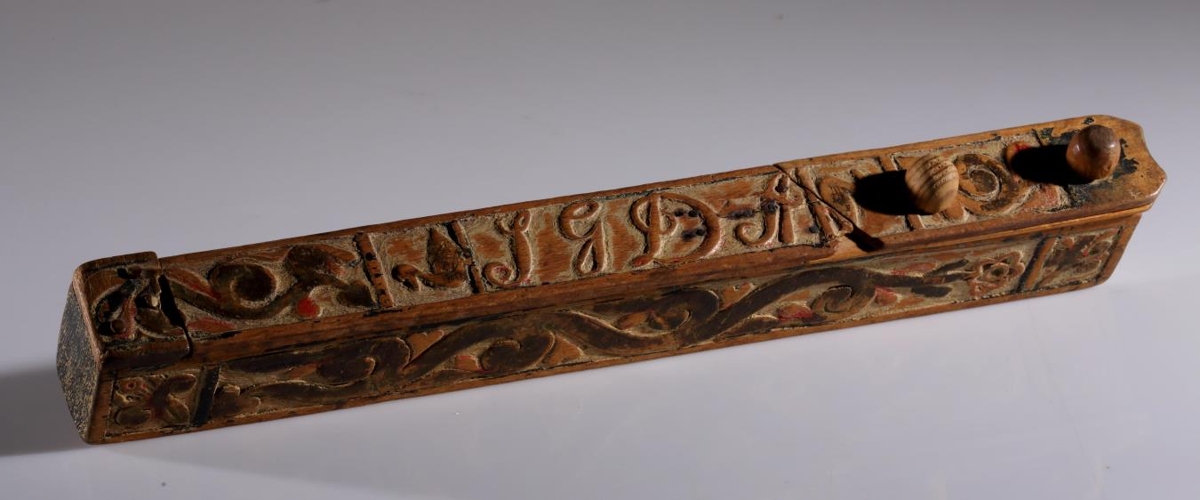 Eftirfarandi upplýsingar hefur gefandi, Halldóra B. Björnsson, skráð og eru festar neðan á lok prjónastokksins: Prjónastokk þenna fékk ég hjá Ingigerði Símonsdóttir, systir sr. Bjarna á Brjánslæk. Hann er smíðaður af Davíð á Miðsandi afa hennar og líklega handa langömmu minni, Steinunni Gísladóttur, veit ekki um aðra á þeim tíma, er ætti þetta fangamark, S G D Á. Ingigerður fékk stokkinn eftir móður sína, Sigríði Davíðsdóttur, og bað mig að koma honum á Þjóðminjasafnið. Stokkurinn er með útskurði á hliðum og á loki en þar eru stafirnir SGDÁ.