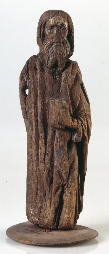 Líkneski útskorið úr eik og hefur verið með litum, en þeir eru að mestu af: það er að líkindum mynd Páls postula eða einhvers af guðspjallamönnunum, í fornum búningi, með bók á vinstri hendi, mikið hár og skegg. Nær niður á mjóa legg. Hæð 38 cm. Varla yngra en frá 14. öld. Mun fyrrum hafa tilheyrt Hjarðarholts kirkju í Borgarfirði.