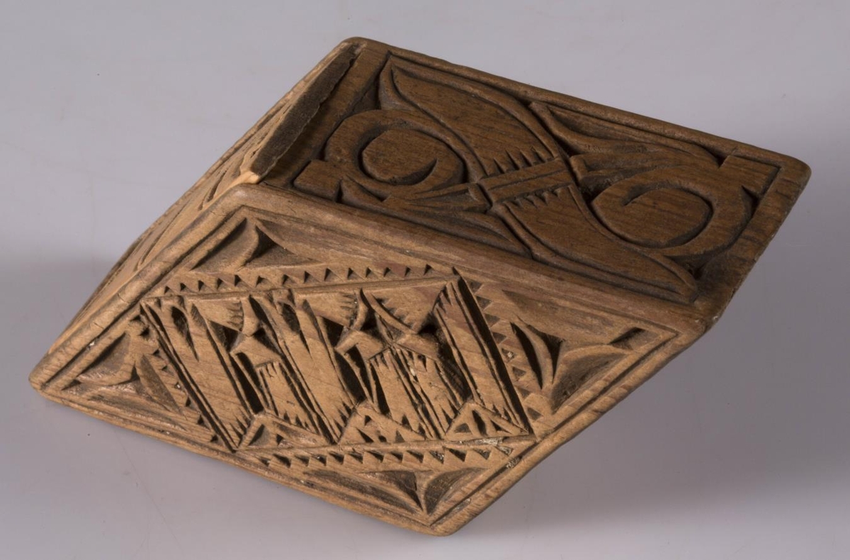 cm., þ. 4 cm. Allir fletir útskornir. Á annari aðal - hliðinni