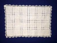 er útsaumaður og með hvítri blúndu umhverfis. Er í mjög góðu ástandi. Ekki