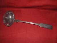 Stór púnsskeið með löngu skafti. Meðfram öllu skaftinu er mjó munsturrák. Skaftið breikkar efst og einnig neðst niður við sjálfa ausuna en þó ekki eins mikið. Aftan á skaftinu er stimpill Sigurðar Vigfússonar og ártal. Stimpillinn er: 18 SV SV SV 49.