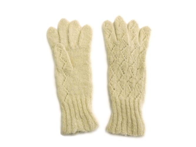 fingravettlingar úr tvinnuðu þelbandi. Útprjónið á vettlingunum er