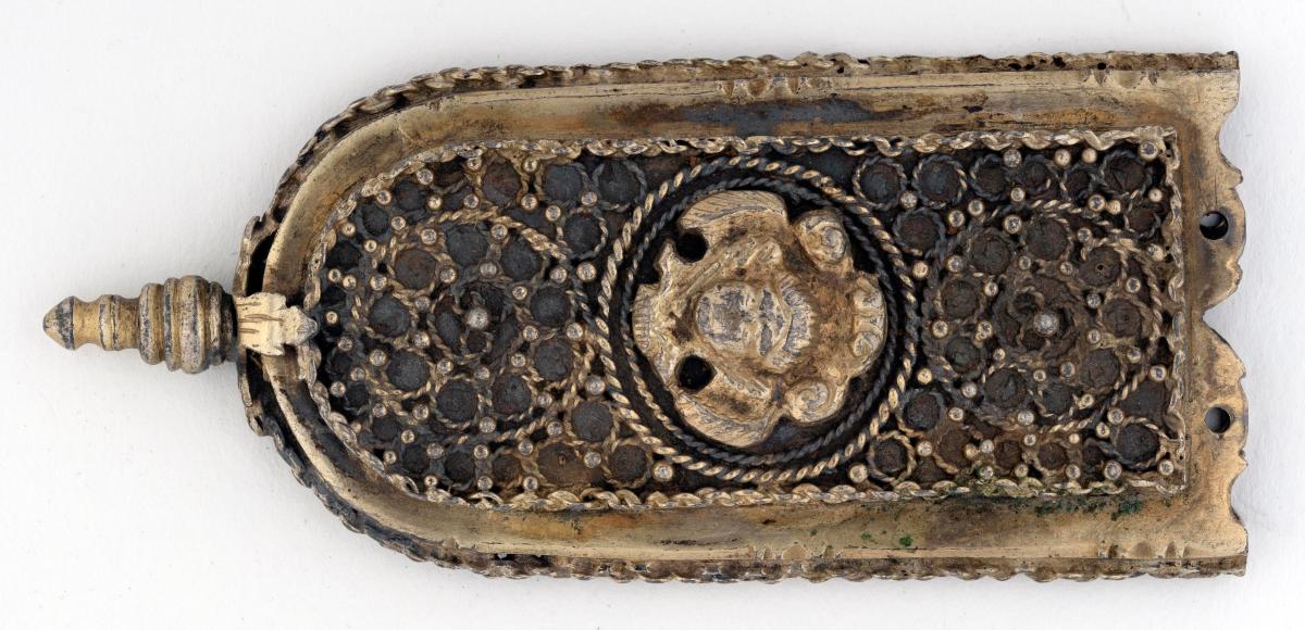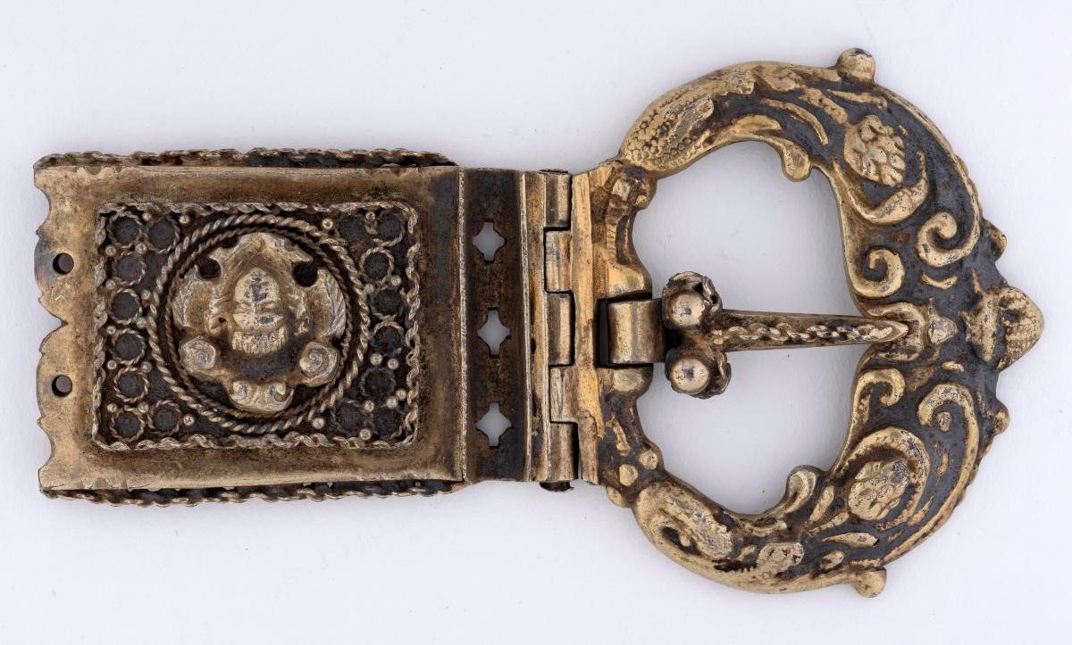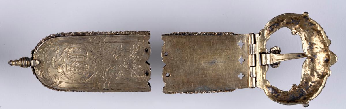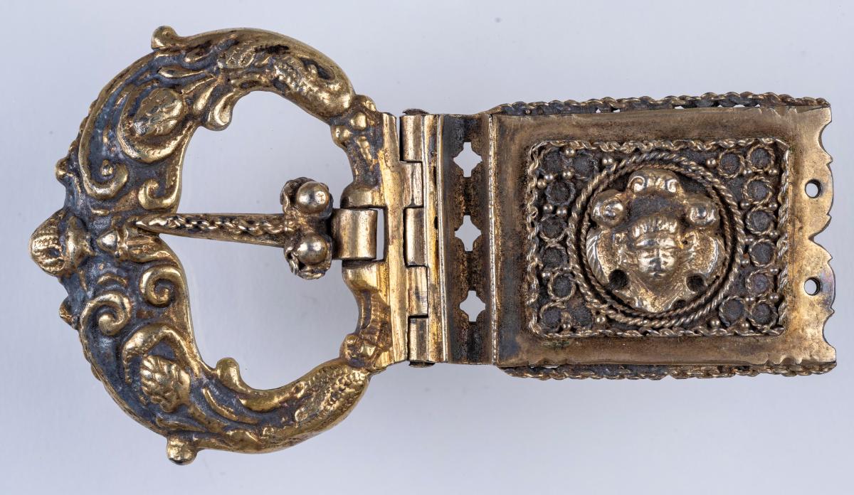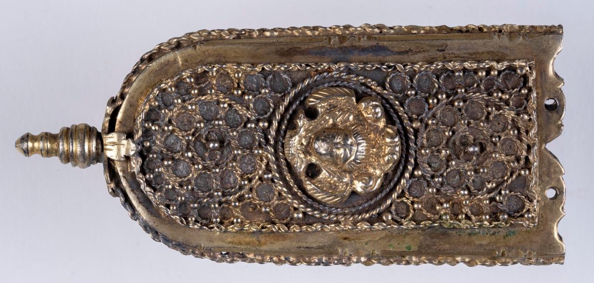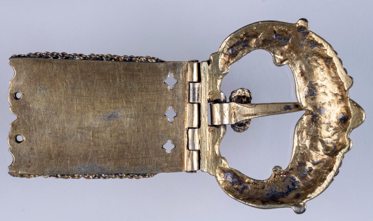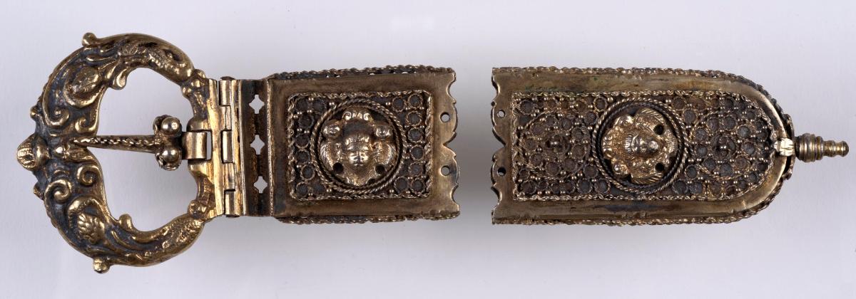 lykur um beltisendann, með hringvíravirki kveiktu á og er þar sett engilhöfuð